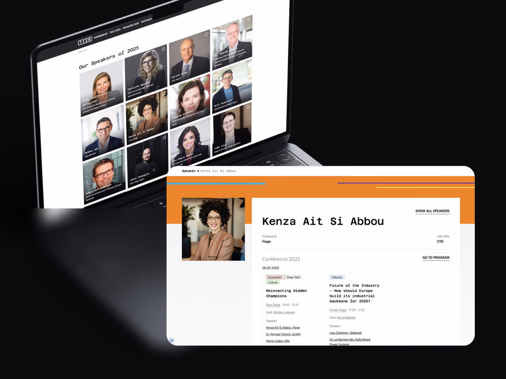 Für die erste „TECH“-Konferenz vom 25.–27. Mai 2025 in Heilbronn – einem Zentrum des europäischen KI-Ökosystems – wurde eine technologische Plattform benötigt, die Inhalte, Teilnehmer-Management und strategische Partnerschaften digital abbilden kann. Gleichzeitig sollte die Plattform langfristig als Knowledge Hub für Technologiethemen dienen.