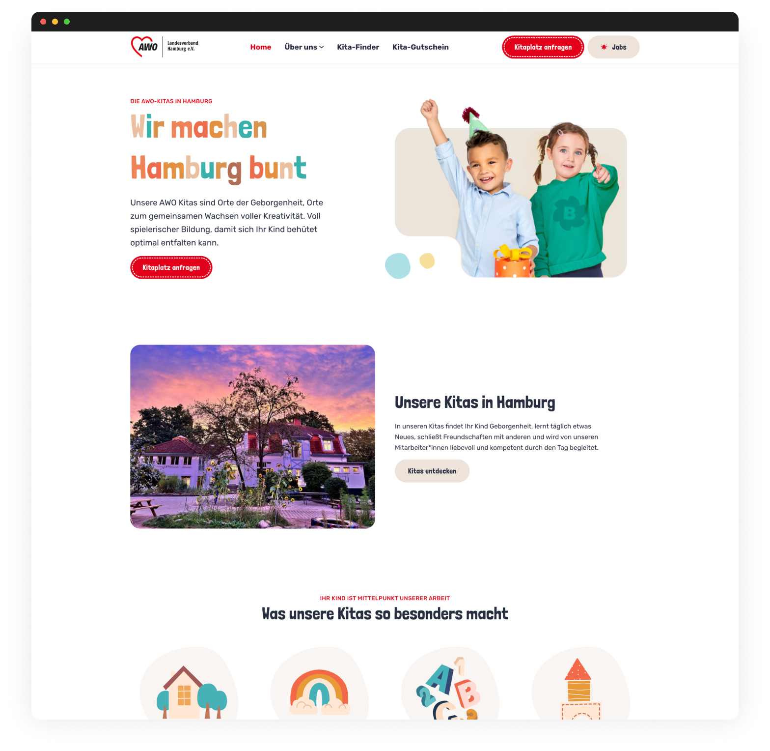 Für die Kitas der AWO in Hamburg haben wir die bestehende Website einem gezielten Relaunch unterzogen und alle Angebote auf einer zentralen Plattform gebündelt. Auf Basis von Statamic entstand ein einfach bedienbarer CMS-Baukasten, mit dem Inhalte zielgruppengerecht gepflegt werden können. Ein klares, strukturiertes Look & Feel sowie ein integrierter Kita-Finder auf Kartenbasis verbessern das Nutzererlebnis für Eltern, Betreuende und Bewerber:innen. Ein durchdachtes Rollen- und Rechtemanagement unterstützt dabei die Kitaleitungen in ihrer täglichen Arbeit.