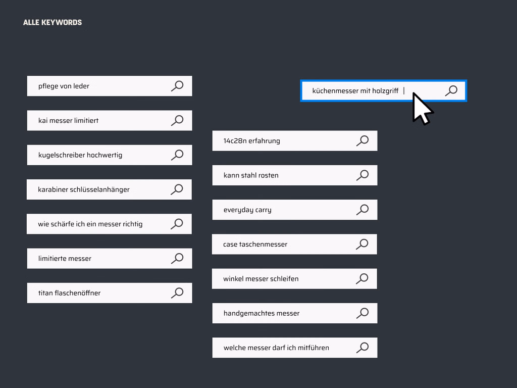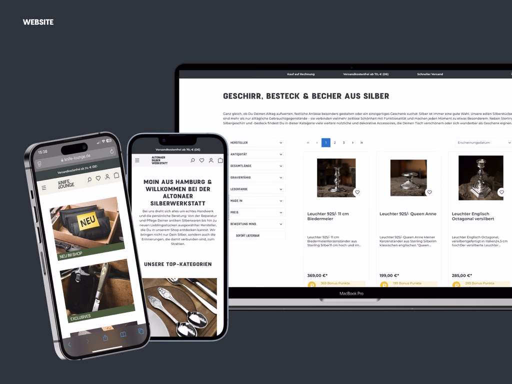 The Altonaer Silberwerkstatt and the Knife Lounge therefore aim to increase the visibility and awareness of both websites. The challenge is to establish a clear differentiation of the keyword focus and thus strengthen the two different websites in their specialized areas.