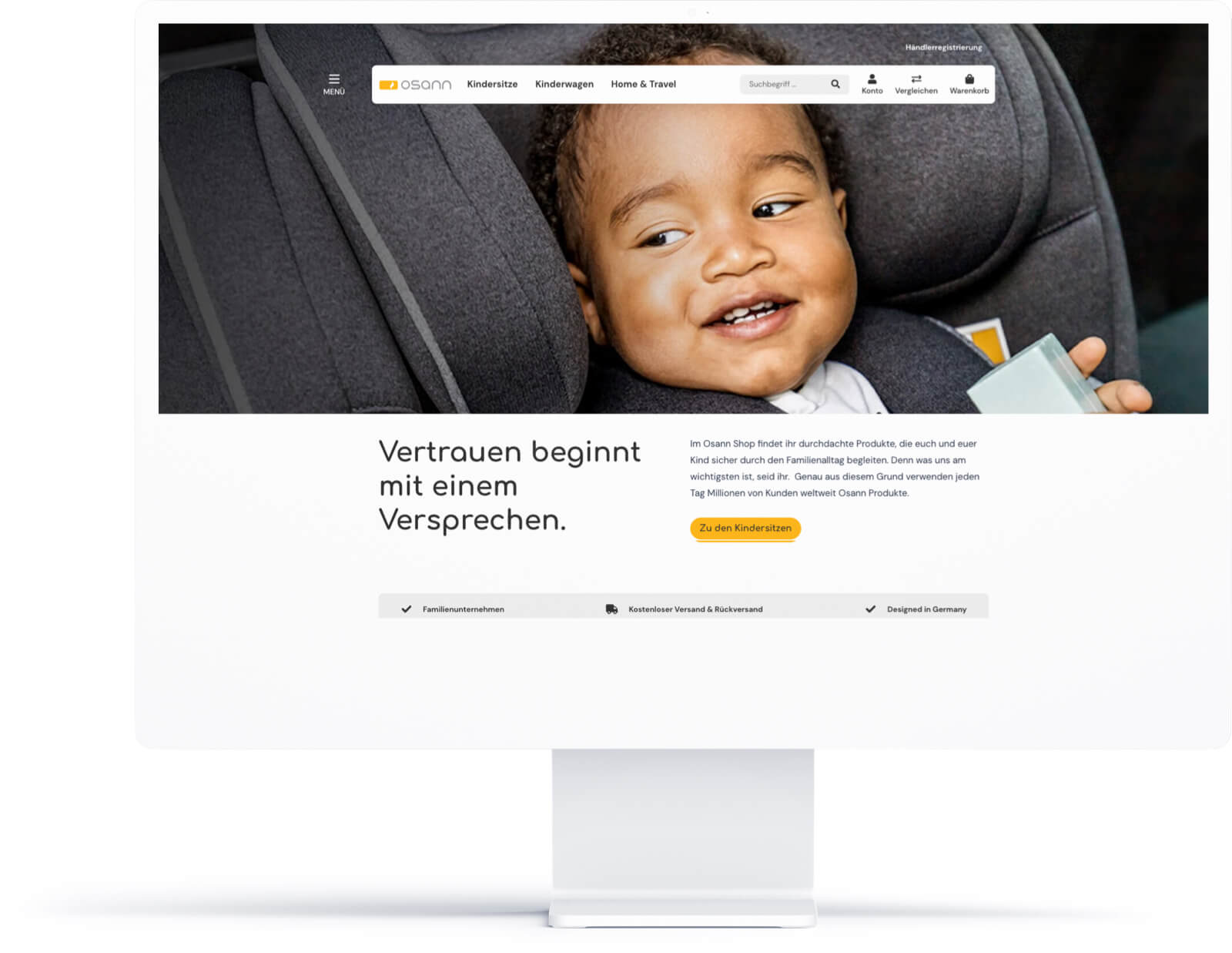Osann supports families onto their exciting path in an active manner – with different products for different needs. The newly built online shop section was meant to pay in on these UX-factors: design, trust building and joy of use. Other focus points were the optimization of conversion rates and the creation of a modern look & feel. For us, that‘s mere child‘s play. Let‘s go!